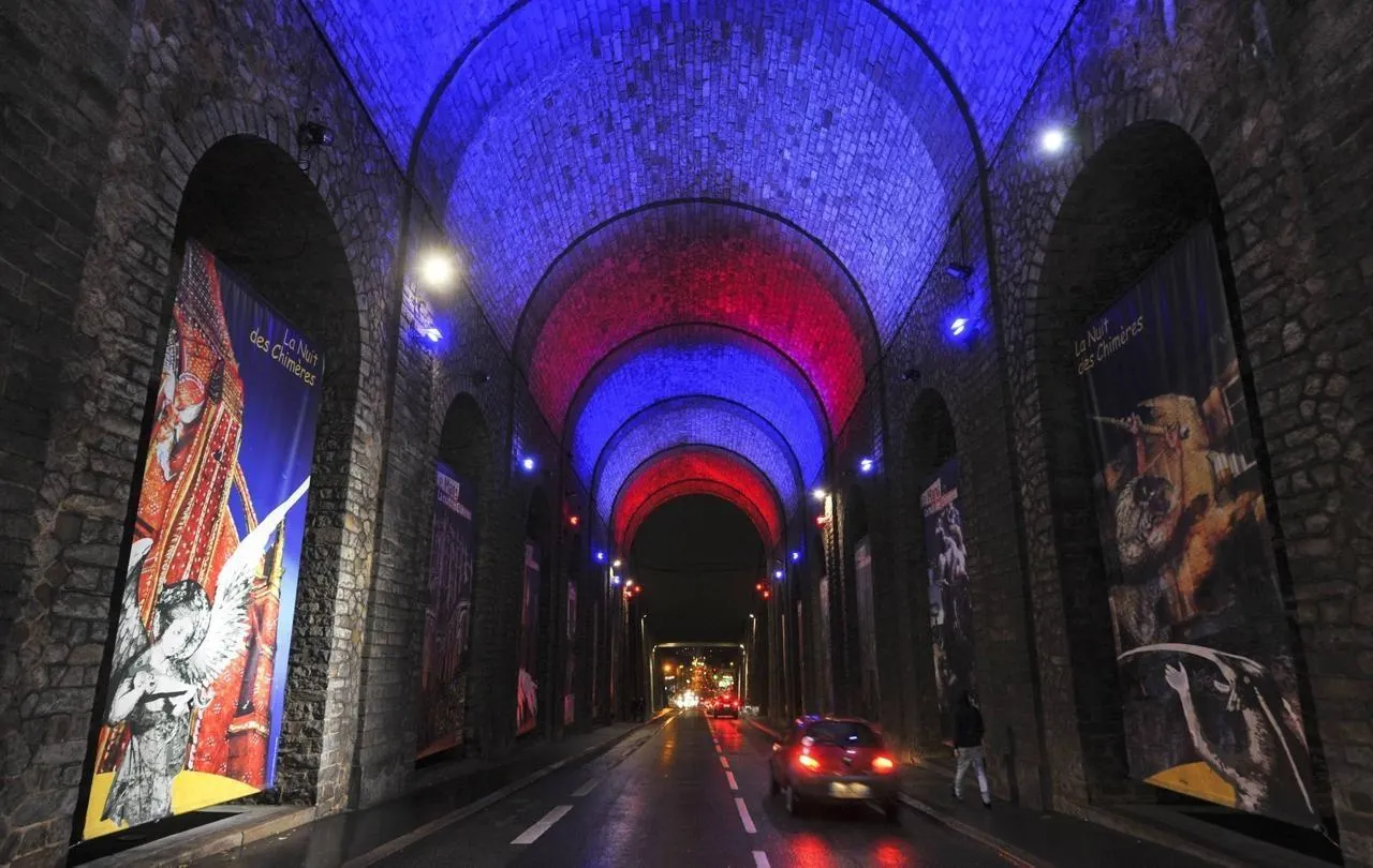 Au Mans, le tunnel a été illuminé en bleu blanc rouge. Photo archives Le Maine Libre Denis Lambert