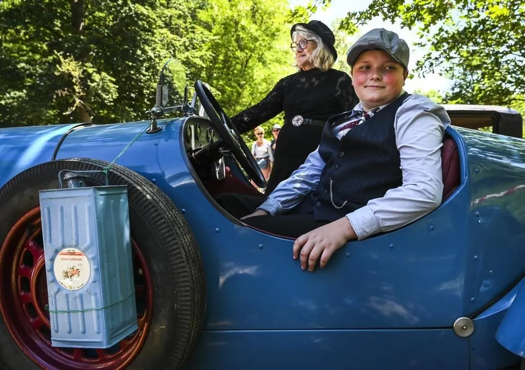 Gapette vissée sur la tête, costume trois-pièces, montre gousset, le tout chiné chez Emmaüs pour l’occasion. À 11 ans, Noah a déjà tout d’un grand, encore plus quand il est assis derrière le volant de la Ford ...