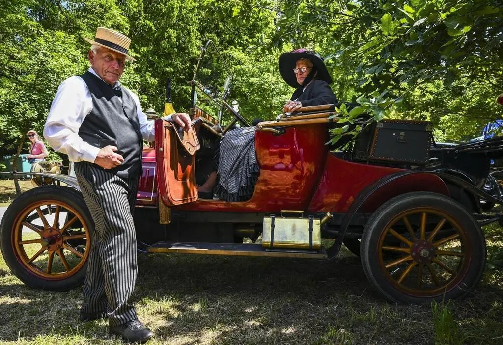 Dans le parc du château de Saint-Mars-la-Brière (Sarthe), vous pouvez aussi bien croiser une De Dion-Bouton de 1903, une Ford Siata de 1936… que des Cadillac des années 60. Un grand écart qui permet de toucher toutes les générations jusqu’à ce dimanche soir.