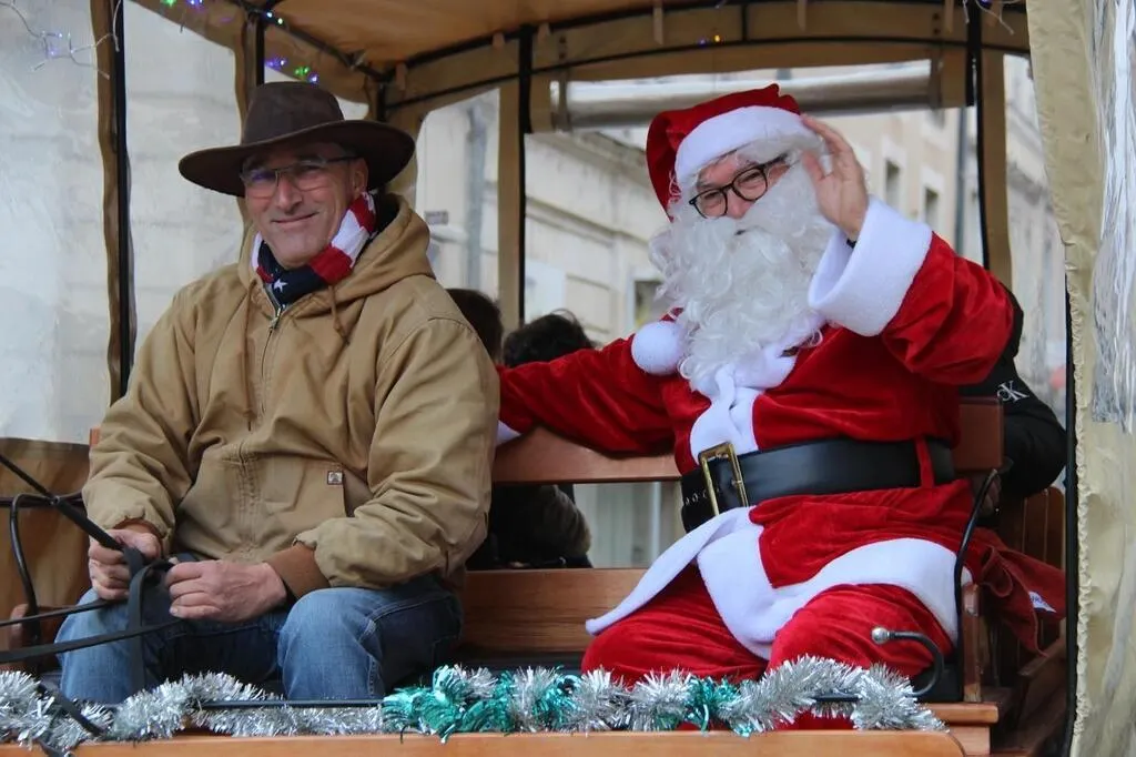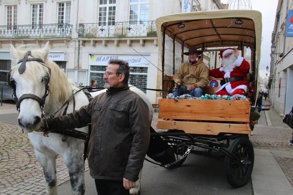Évidemment, le marché de Noël ne serait pas totalement réussi sans le passage régulier du Père Noël, bien au chaud au stand photo, mais aussi emmitouflé dans sa barbe, à bord d’une calèche tractée par un cheval de trait, (une nouveauté de cette année), invitant les enfants à monter avec lui à travers les rues du centre-ville. À ce petit jeu, on aura reconnu Dominique Chaslerie, qui rempile bénévolement sous l’habit rouge et blanc. « C’était maintenant ou jamais », s’esclaffe celui qui n’a pas fini de rendre service avant le 25 au soir.