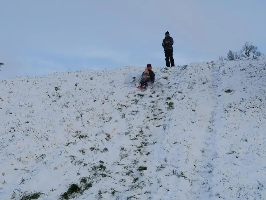 Au parc du château, petites et grandes dévalent joyeusement les pentes, pendant que d’autres s’affrontent à coups de boules de neige.