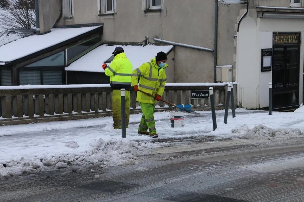 « C’est bien tombé… », confirme un agent municipal, occupé à saler le pont de la Grande-Rue.