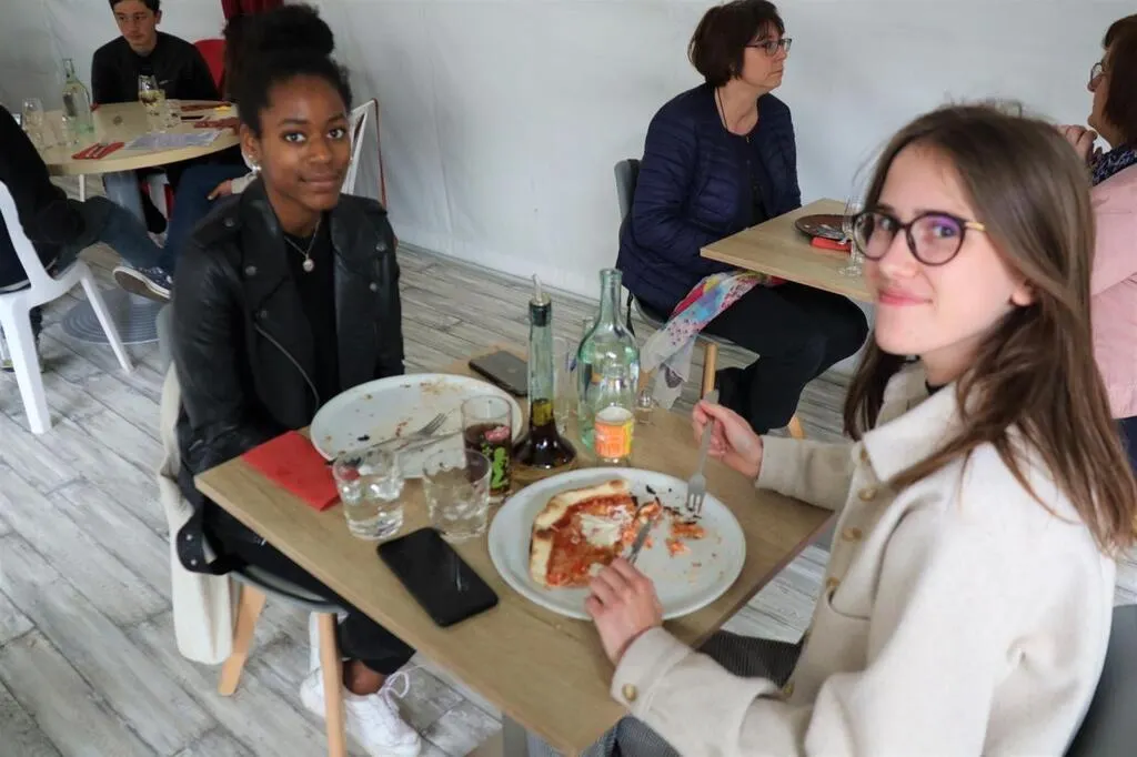 Au P’tit bouffon, crêperie emblématique de la rue du Château à Sablé-sur-Sarthe, la terrasse comptait une quinzaine de clients à l’heure du déjeuner, ce mercredi 19 mai 2021. © Ouest-France