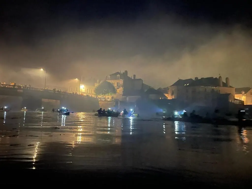 Ces kayakistes ont pu se placer aux premières loges pour admirer le spectacle. Équipés de lampes frontales, ils ont choisi d’être sur l’eau pour voir le feu d’artifice, et découvrir Sablé de nuit.