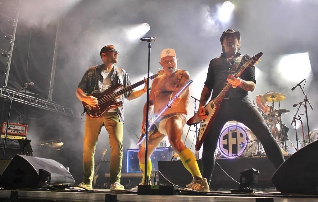 Manou Ramirez, le chanteur d’Elmer Food Beat, a fini le concert en slip de Superman après avoir balancé le reste dans le public. Ouest-France