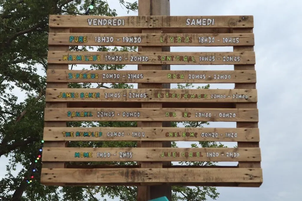 Le festival À Tout Bout d’Champ a le sens de la récup' : une palette, un peu de peinture et vous avez une pancarte pour annoncer le programme des concerts des deux jours. Ouest-France