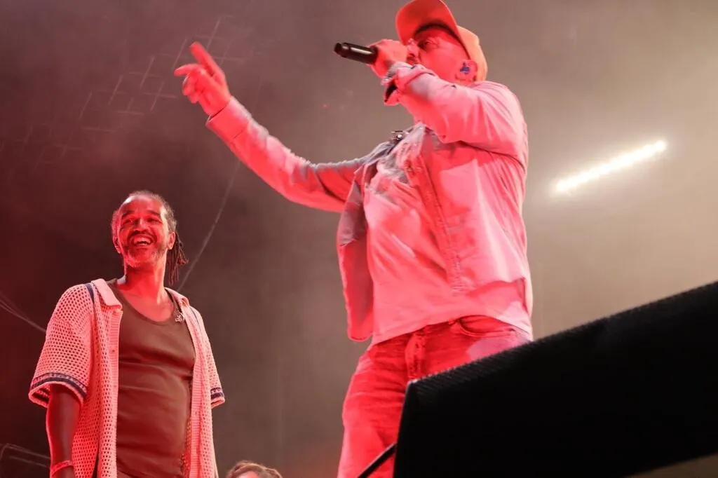 Bouchkour et Komlan, les deux chanteurs de Dub Inc n’ont pas eu besoin de beaucoup s’employer pour mettre en orbite les festivaliers d’À Tout Bout d’Champ. © Ouest-France