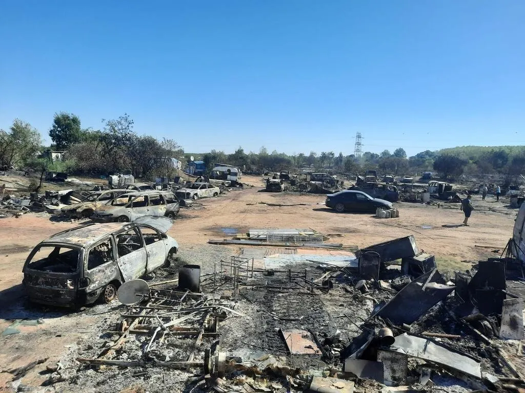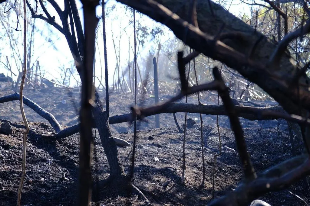 Le campement Roms de la prairie de Mauves à Nantes a été complètement dévasté par l’incendie, mercredi 10 août. © Ouest-France