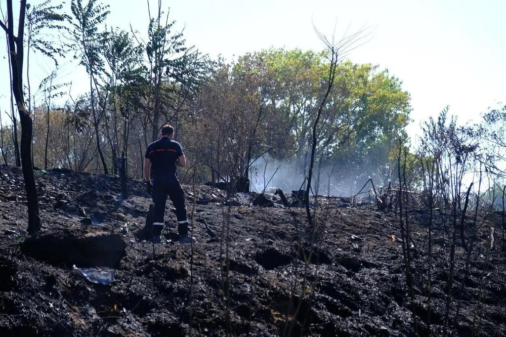 Le campement Roms de la prairie de Mauves à Nantes a été complètement dévasté par l’incendie, mercredi 10 août. Ouest-France