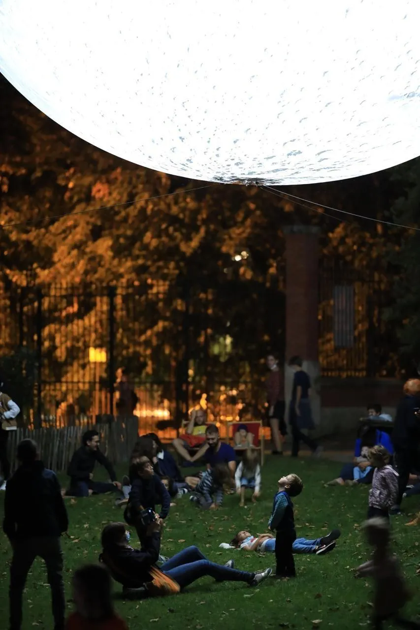 La nuit vient de tomber mais la lumière demeure au parc de Tessé au Mans (Sarthe). Une installation d’une lune géante, de 7 mètres de diamètre, a été placée pour le plus grand émerveillement de ses visiteurs.