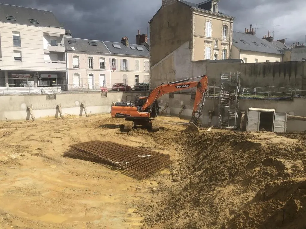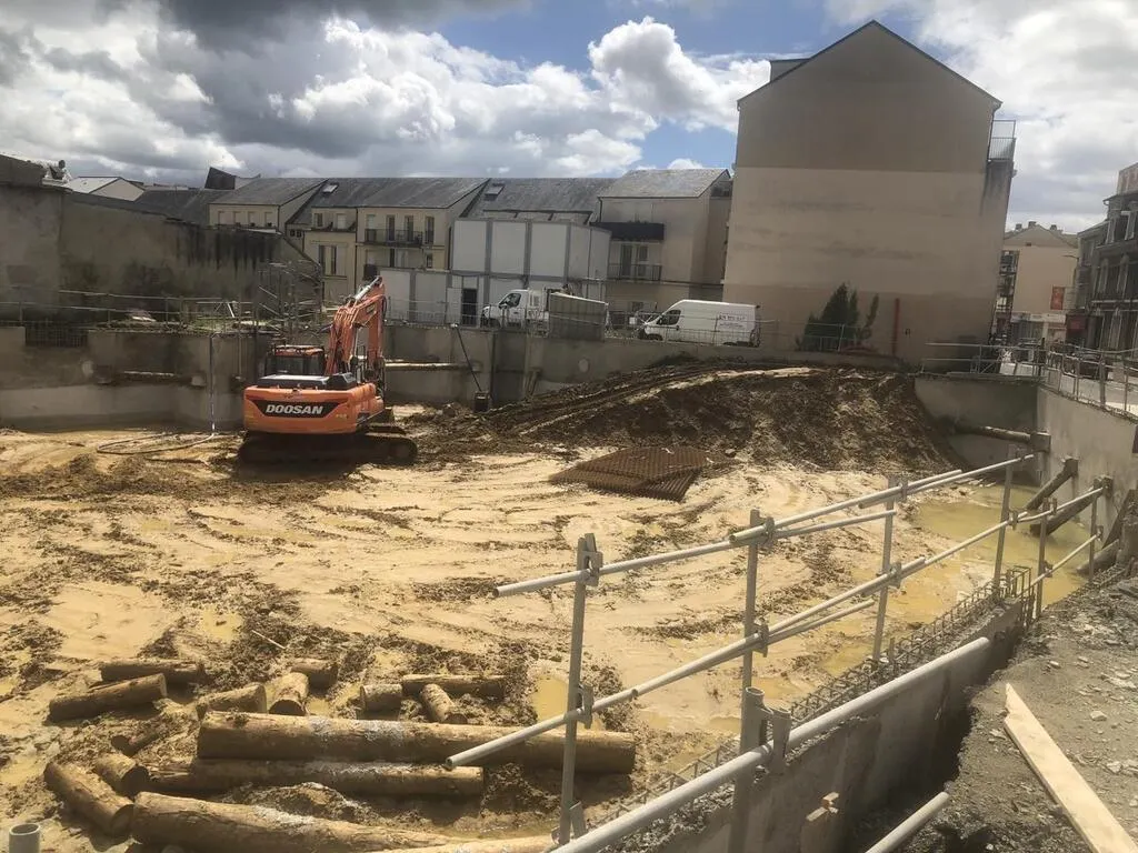 À l’angle de la rue Nationale et de la rue de la Fuie, l’heure est à la réalisation des fondations pour la résidence étudiante du groupe Marignan. Le Maine Libre