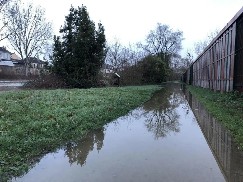 Une partie du halage, derrière la rue d’Australie, au Mans (Sarthe), a été recouverte d’eau, ce vendredi 5 janvier 2024. © Ouest-France