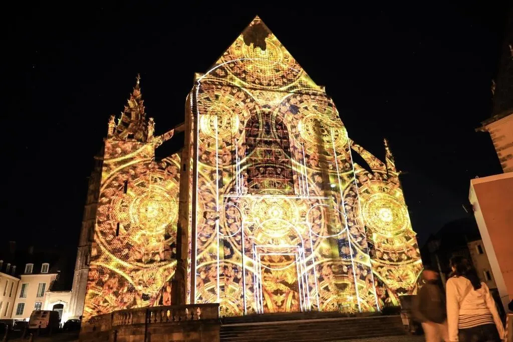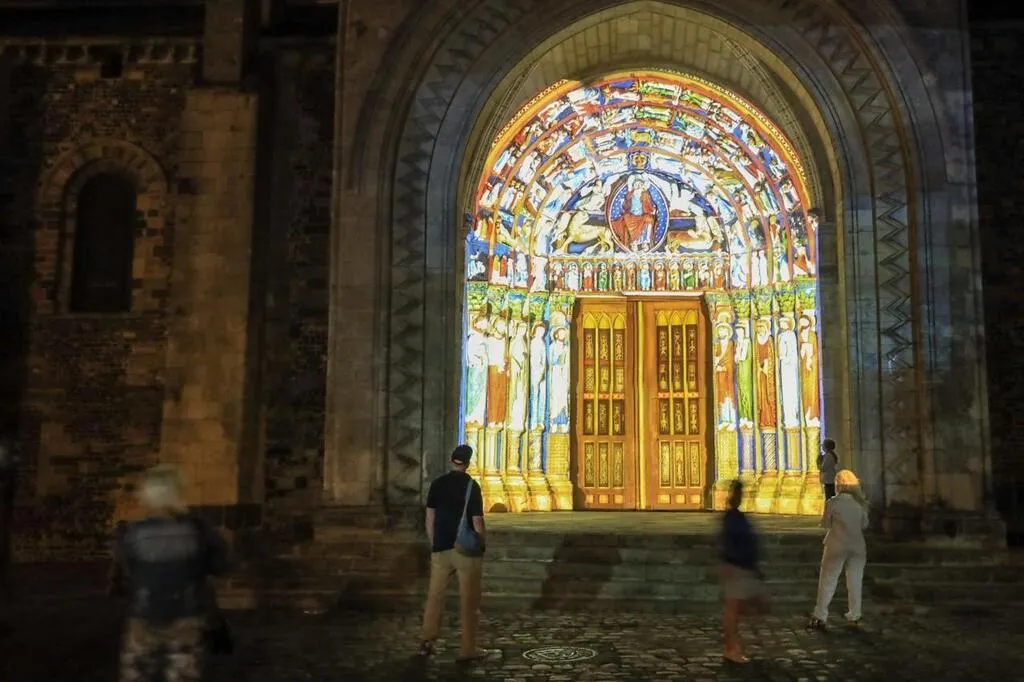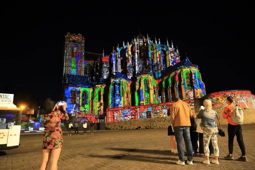 Devant la cathédrale, les spectaculaires projections attirent quantité de touristes. On y entend parler une multitude de langues. On peut découvrir aussi les Chimères en petit train… © Ouest-France