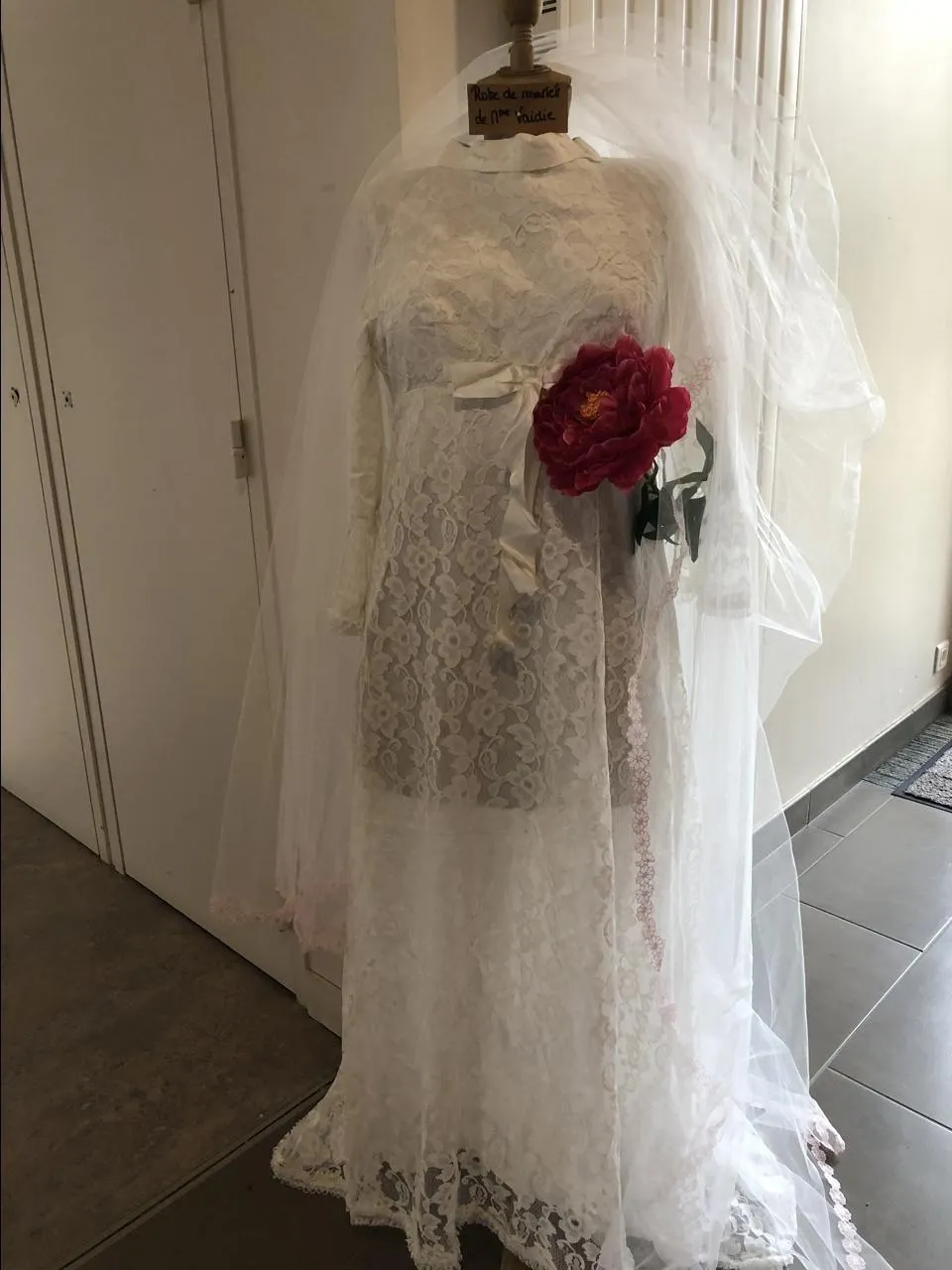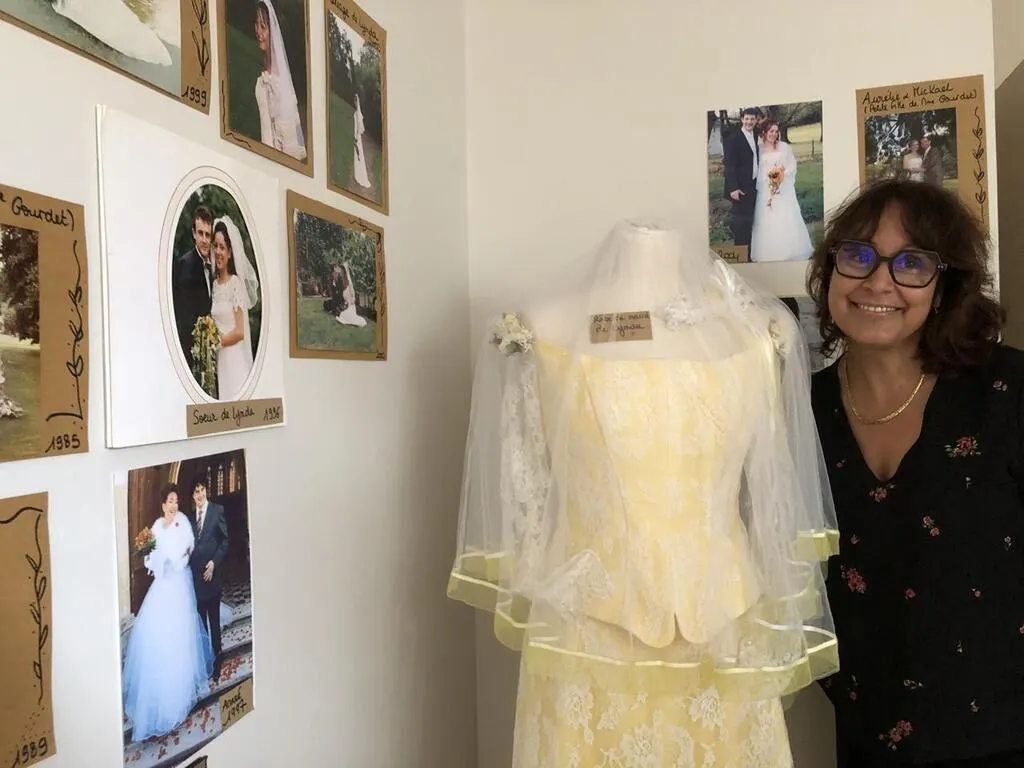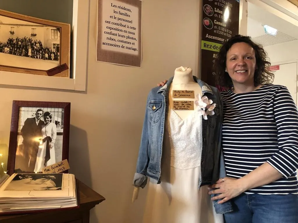 Les résidents, les familles, les personnels… Chacun a prêté une robe de mariée, des gants, un diadème, un costume, des photos de cérémonie. Mise en scène dans les couloirs de l’Ehpad Le Séquoia, à Parcé-sur-Sarthe, l’exposition est ouverte à tous jusqu’à début juin.