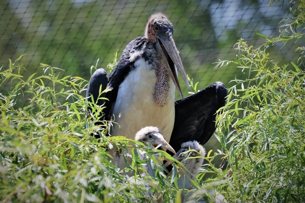 Le marabout d’Afrique est une espèce qui se reproduit peu, mais deux petits sont nés cette année 2023 au Spaycific’Zoo. © Marc TRANCHANT