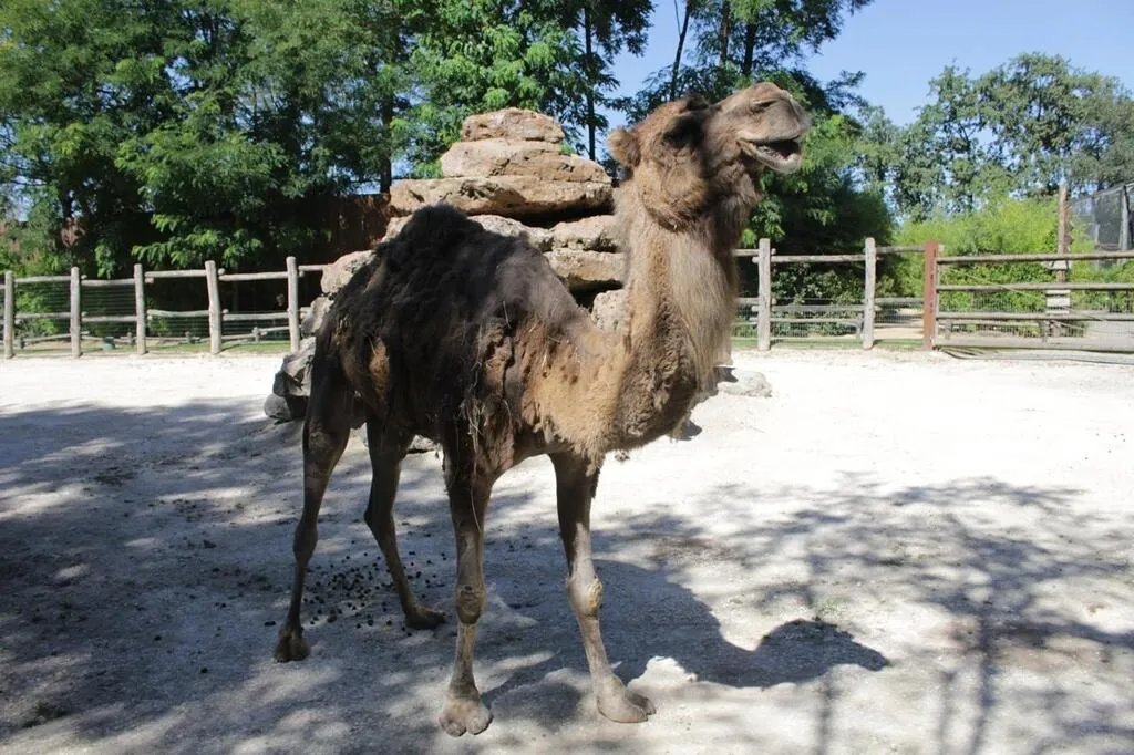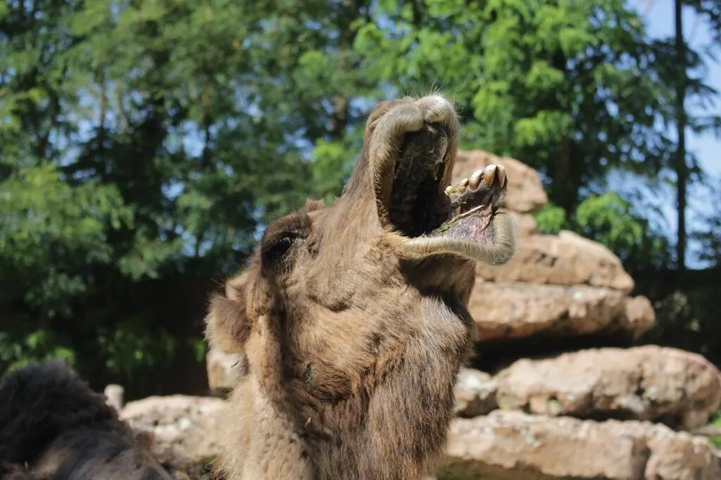 La Flèche, jeudi 8 août 2024. Un petit sourire ! Des dromadaires occupent l’ancien enclos des girafes depuis cet été au zoo de La Flèche. © Le Maine Libre