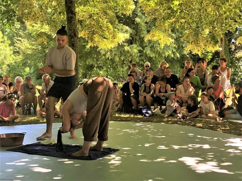 SOI(E), un spectacle que les organisateurs du Mans fait son cirque ont déplacé à l’ombre en deux temps trois mouvements peu de temps avant la représentation, afin que public et artistes profitent plus agréablement. © Ouest-France