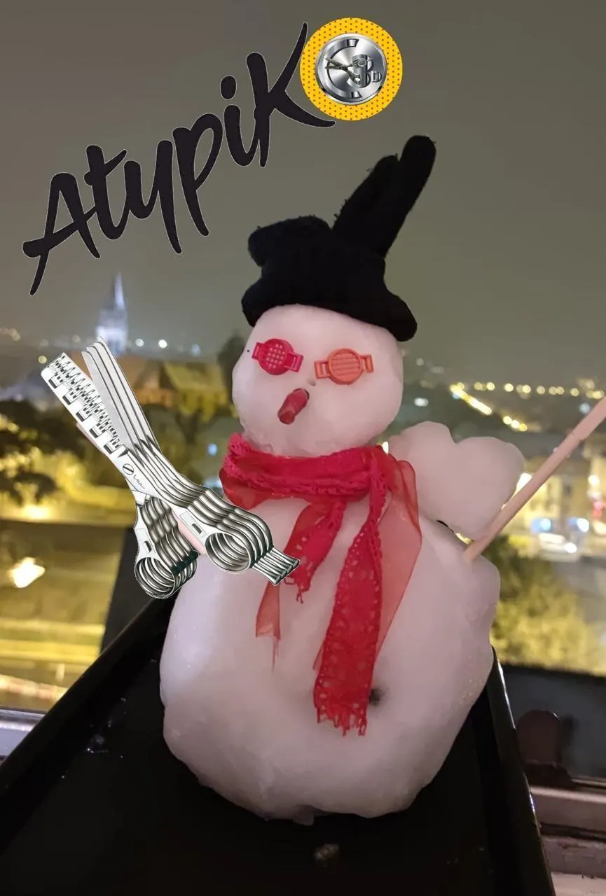 Un bonhomme de neige pour le moins original, concocté par une coiffeuse et sa fille. Atypik Coiffeuse – Facebook