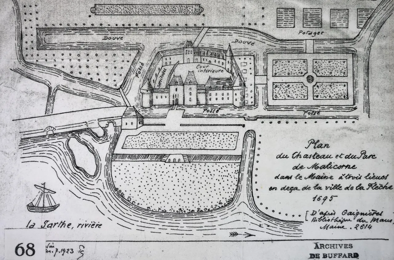 Le château de Malicorne-sur-Sarthe se visite. Ses origines remontent au Moyen Âge, mais l’essentiel du bâti, avec son plan en T, est de la toute fin du XVIIIe siècle. Les douves, habituellement en eau, ont été asséchées pour effectuer d’importantes restaurations. © Ouest-France