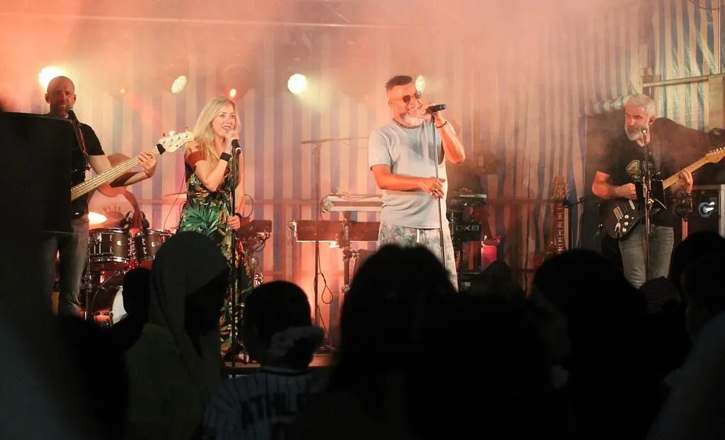 Le groupe Redcash, autour de la chanteuse sabolienne Grace Galicia Landeau, a pris le relais après le karaoké, place Dom-Guéranger. Ouest-France
