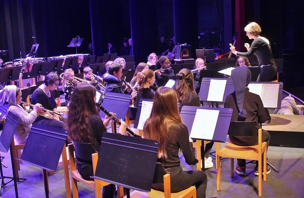 L’orchestre à vent junior du conservatoire du Pays sabolien, samedi, sur la scène Joël-Le Theule. Ouest-France