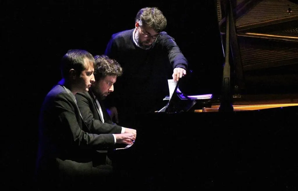 Les pianistes du Geister Duo ont livré une prestation à quatre mains avec l’aide de Samuel Delafuys, professeur au conservatoire, pour tourner les pages de leur partition, samedi, sur la scène Joël-Le Theule. Ouest-France