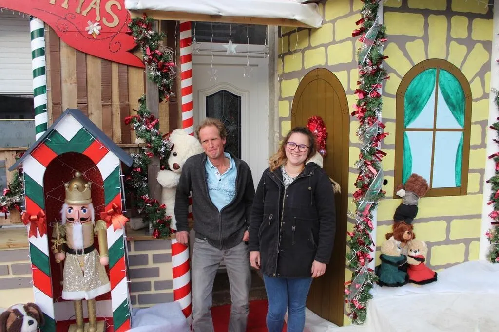 Cette année, Cédric Beaudouin a été aidé par sa fille aînée, Cindy, ses deux autres filles, et son gendre, pour mettre en place son décor de Noël. © Ouest-France