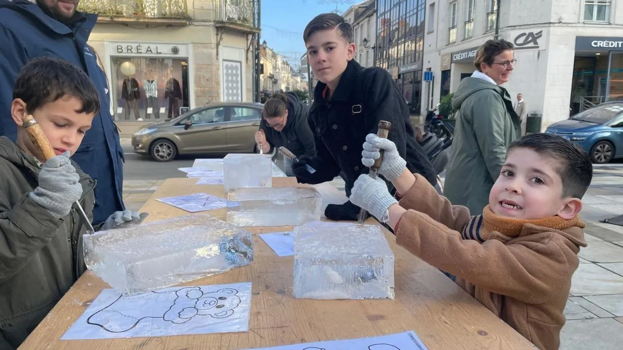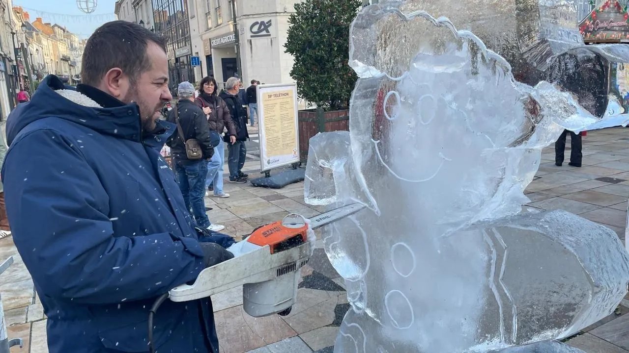 Matéo, sculpteur pour Ice and art, a réalisé une performance ce samedi 13 décembre 2025 sur la place Henri-IV, à La Flèche (Sarthe). Plusieurs animations de Noël étaient au programme.