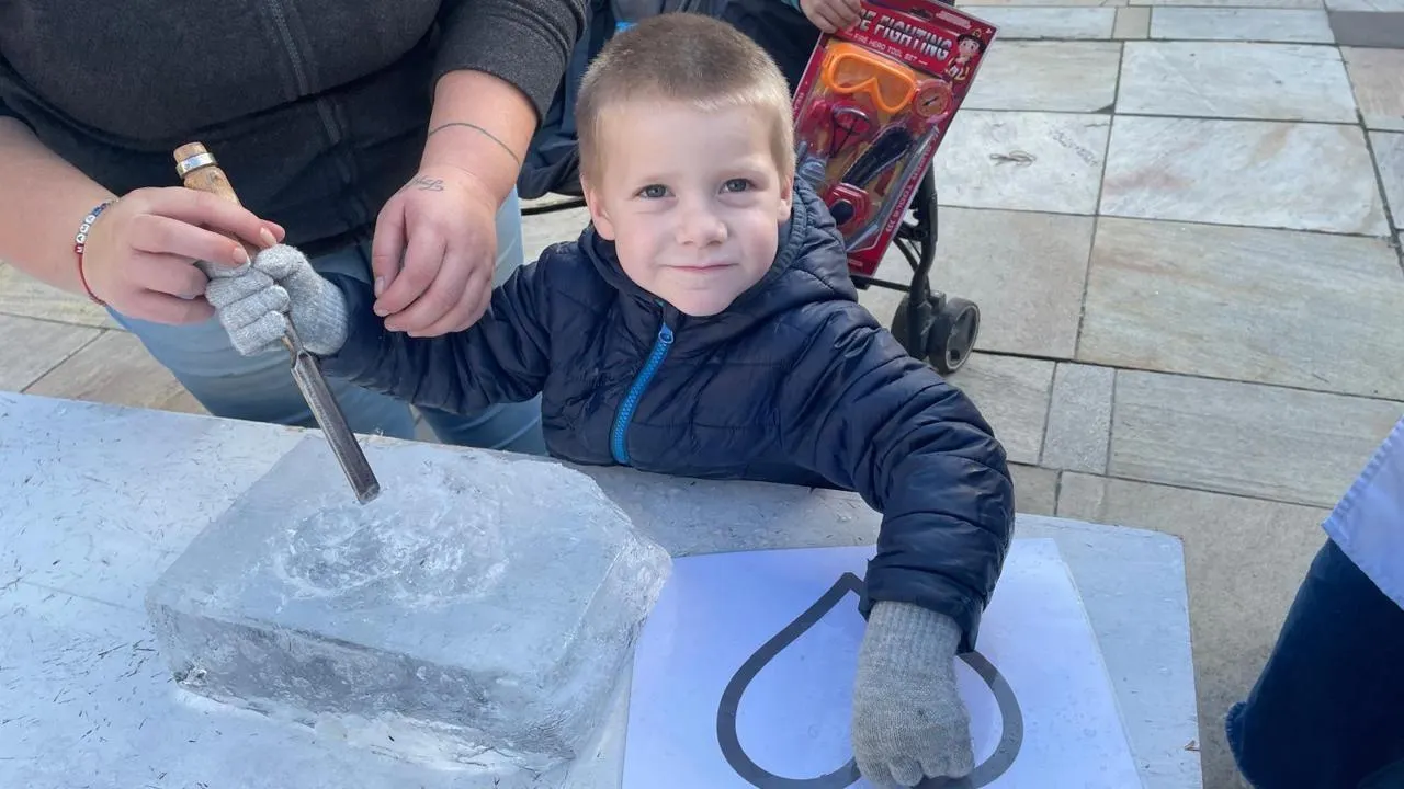 EN IMAGES. Il réalise une œuvre en glace à la tronçonneuse : des étoiles dans les yeux des enfants... |