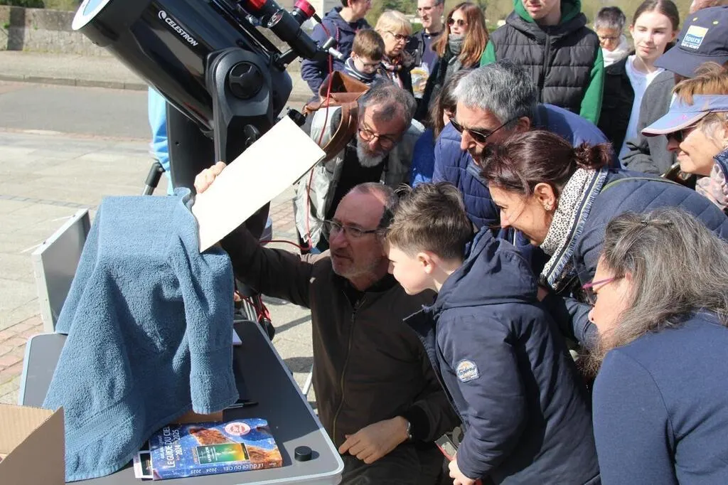 Plusieurs dizaines de personnes se sont succédé à l’observation, entre 11 h et 13 h, sur le parvis de la mairie. Ouest-France