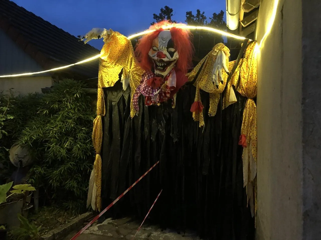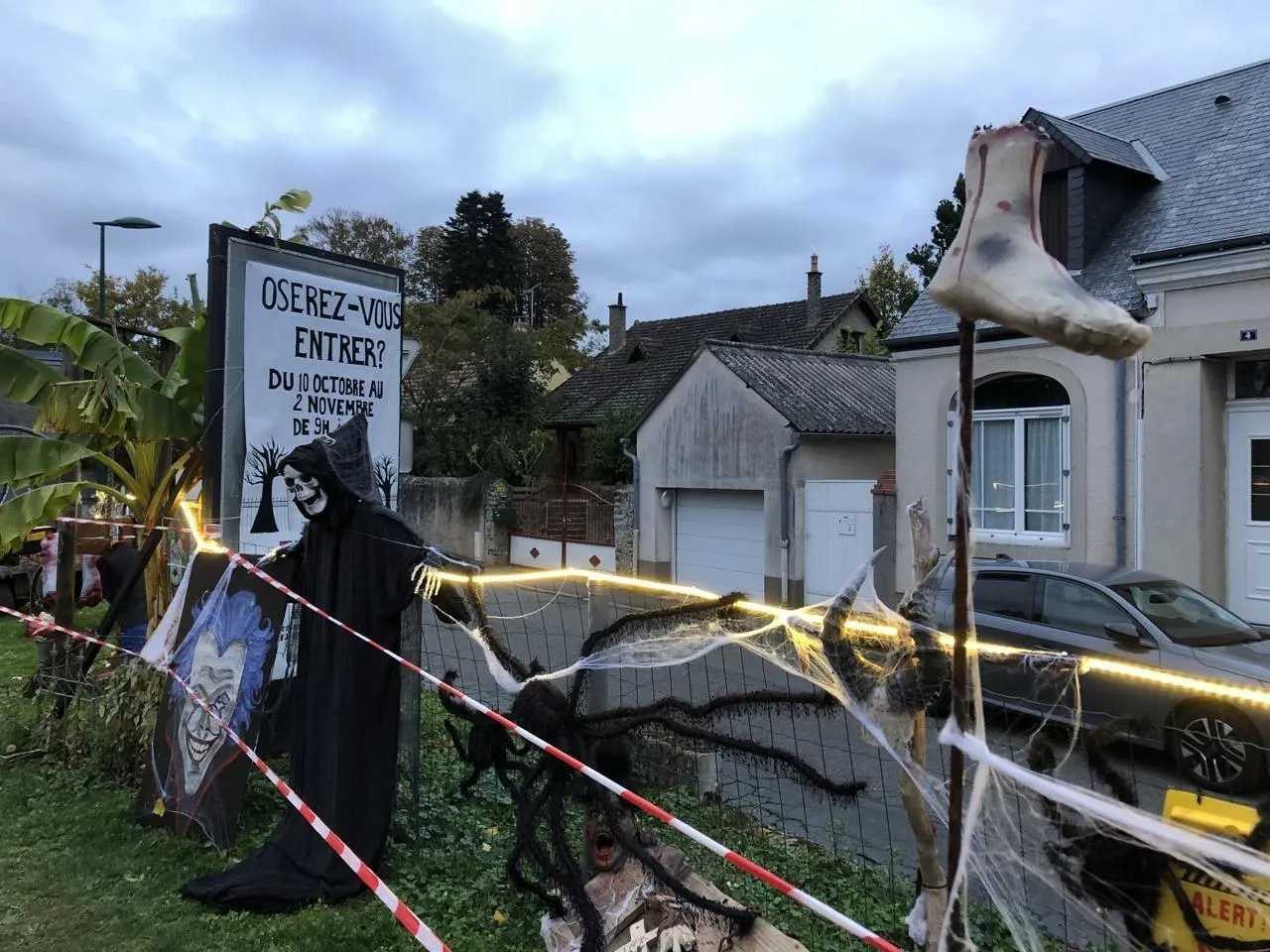 Le jardin de l’horreur de « Tata Manuella », et ses squelettes, donne sur une rue parallèle à la propriété privée. Une ambiance normale depuis onze ans, à chaque période d’Halloween, à Écommoy. © Ouest-France