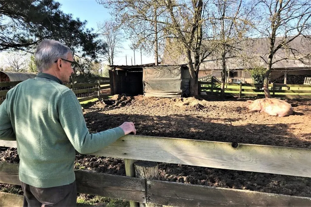 Joël Mahé dans sa ferme pédagogique à Cré-sur-Loir, dimanche 9 avril 2023. © Le Maine Libre