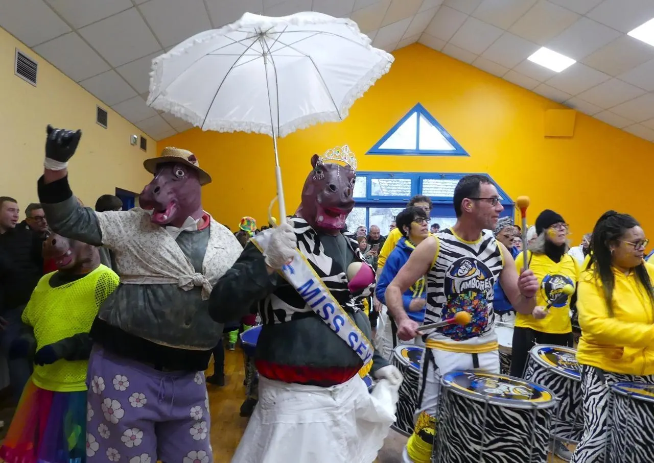 Neige le matin, pluie l’après-midi, le carnaval s’est finalement déroulé dans la salle polyvalente et c’était… vachement bien quand même. © Le Maine Libre