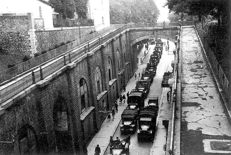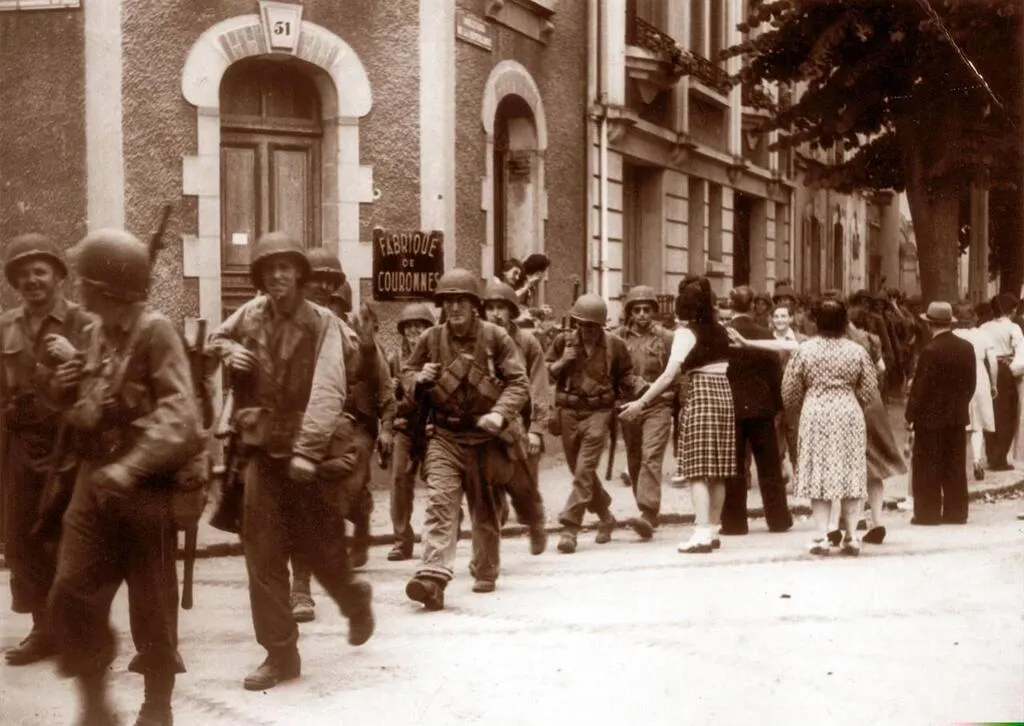 Les Américains sont au Mans. Ici, boulevard de la République, aujourd’hui l’avenue… de la Libération. © Collection Denise Martin