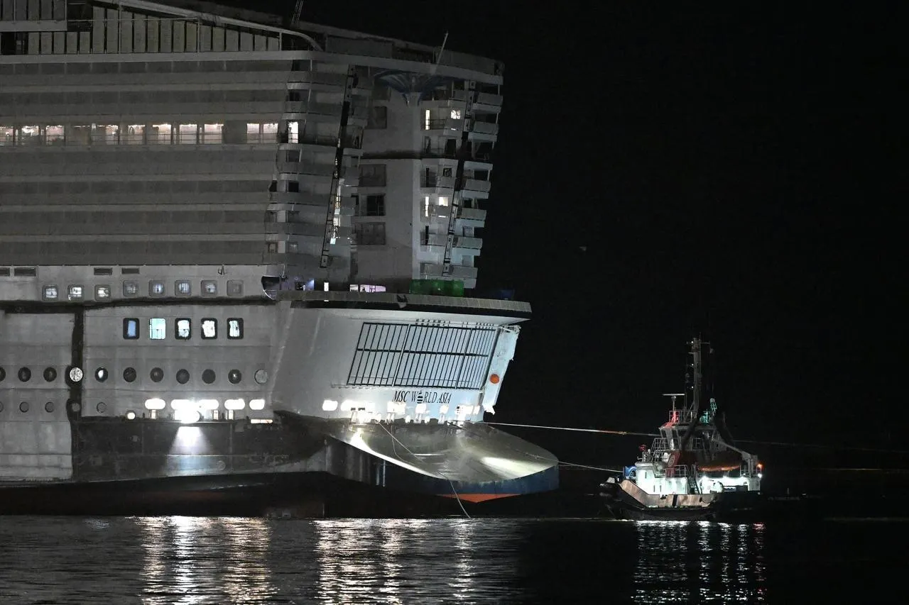 EN IMAGES. Le paquebot MSC Asia, non encore motorisé, bouge dans la nuit à Saint-Nazaire... |