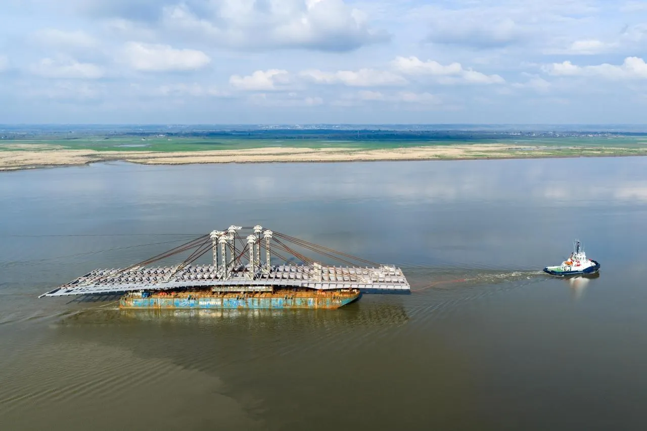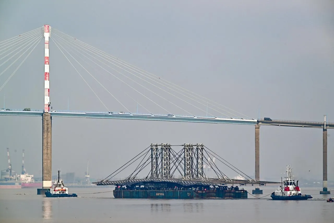 Le tablier charpente du pont Anne-de-Bretagne lors de son passage à Paimboeuf. Franck Dubray / Ouest France
