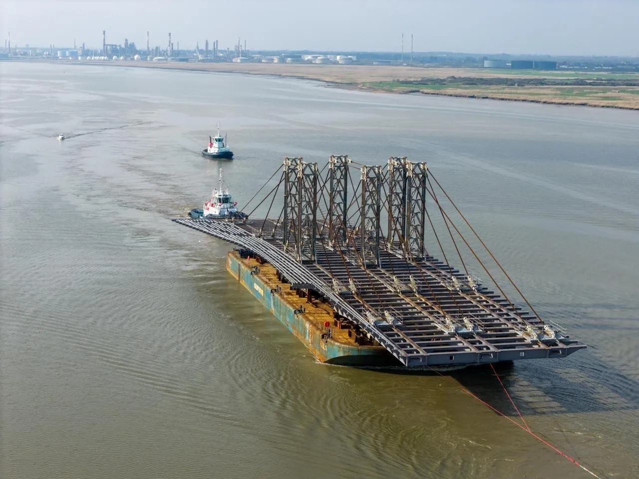 C’est spectaculaire ! Le tablier du pont Anne-de-Bretagne, un convoi exceptionnel en mer, remonte actuellement la Loire après avoir passé le pont de Saint-Nazaire vers 14 h 30.