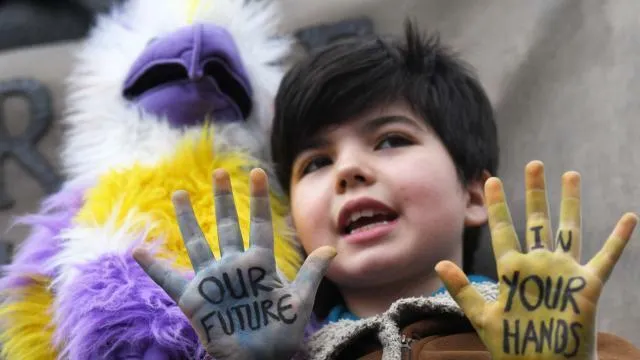 "Notre futur dans vos mains" clame ce petit Londonien. © NEIL HALL/EPA/MAXPPP