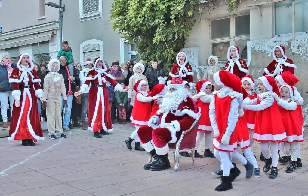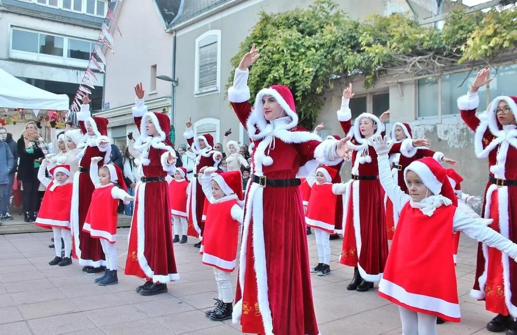 Une quarantaine d’élèves de Sablé danse mania ont accompagné le Père Noël avec un joli ballet dans les rues, samedi 2 décembre 2023. © Ouest-France