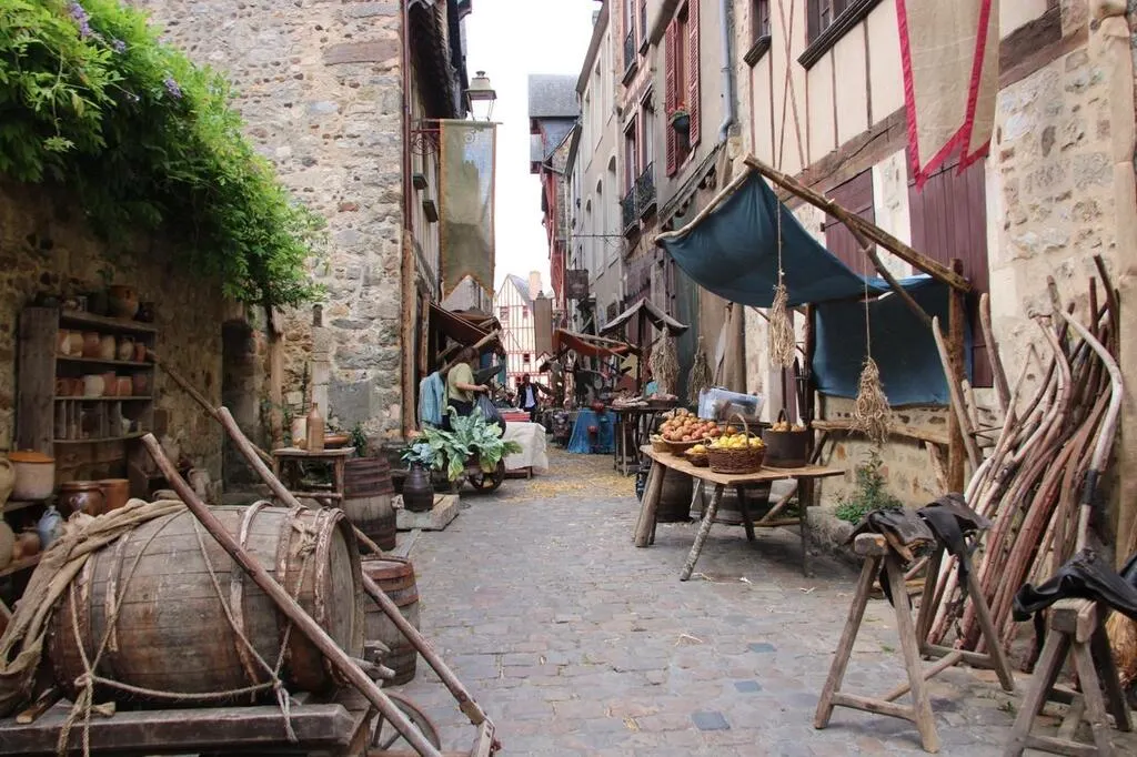 53 figurants sont au rendez-vous pour la scène du marché dans le film « Les caprices de l’Enfant roi » de Michel Leclerc avec Artus et Julia Piaton. © Le Maine Libre
