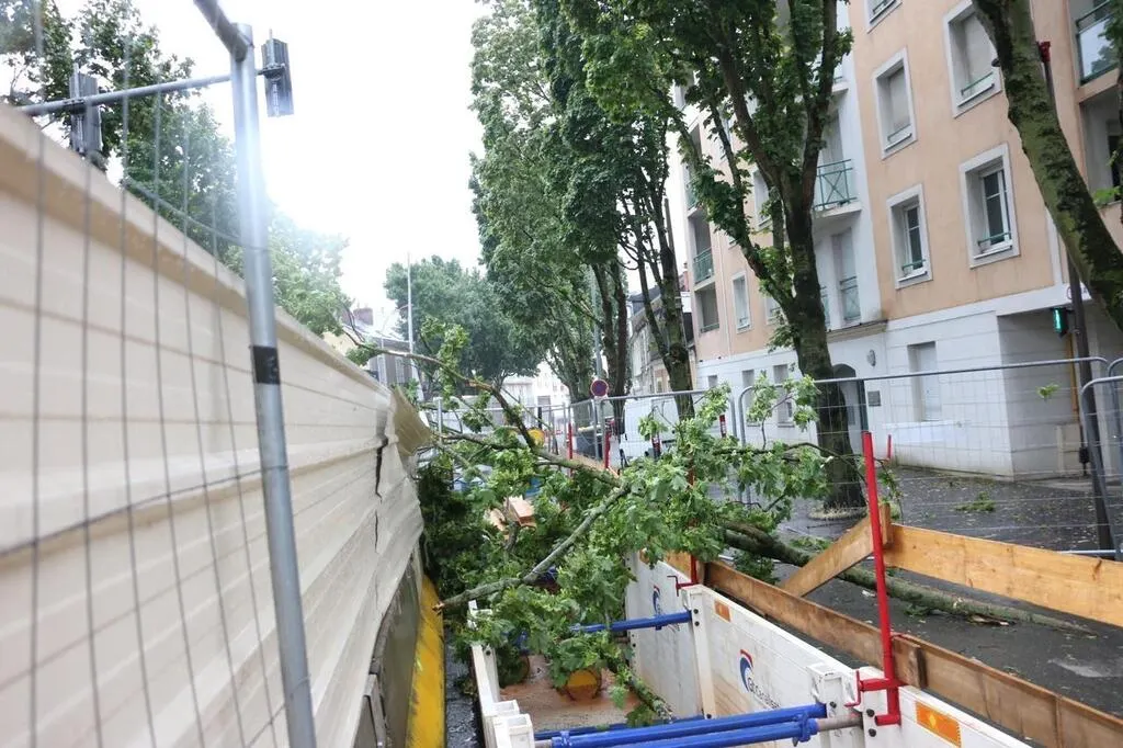 Ce dimanche 18 juin 2023, un violent orage a éclaté au Mans (Sarthe). Les puissantes rafales de vent, accompagnées d’une pluie intense, ont fait des dégâts : inondations, branches tombées sur les trottoirs, les rues, les voies du tram…