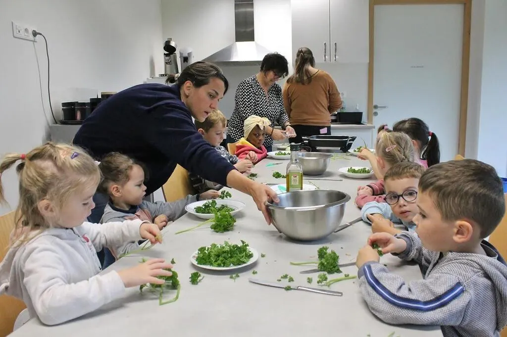 « Cela les fait travailler la coopération, mais également la coordination et la motricité fine de leurs mains avec le maniement des ustensiles. Un peu comme pour la tenue du crayon, relève Aurélie Blon. C’est bien qu’ils voient aussi à quoi ressemblent les aliments avant qu’ils n’arrivent dans leur assiette. Savoir d’où ils viennent. C’était par exemple compliqué pour eux de reconnaître les betteraves chez le maraîcher. »