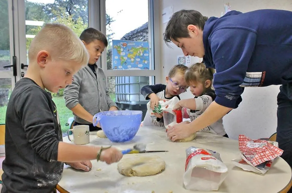 Les petits ont travaillé sur des aliments achetés localement. « Jeudi, ils sont allés faire les courses : chez un maraîcher, un boucher, un boulanger et à l’épicerie du village chez Momo. On montre l’exemple du circuit, comme on essaye de le faire à la cantine, indique la directrice Alexandra Catherine. Une participation de quatre euros par enfant était demandée aux parents. C’est la coopérative scolaire qui finance le reste. »