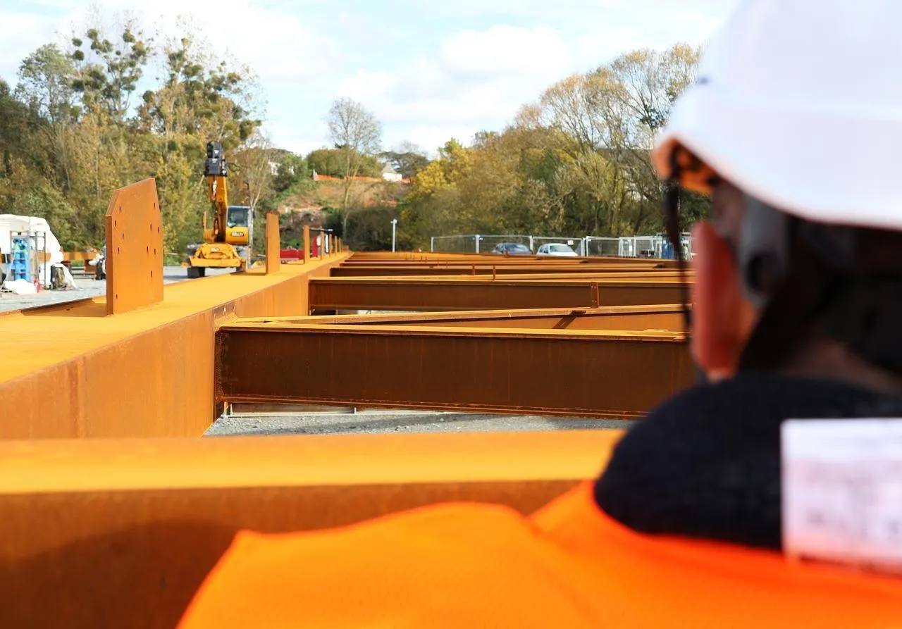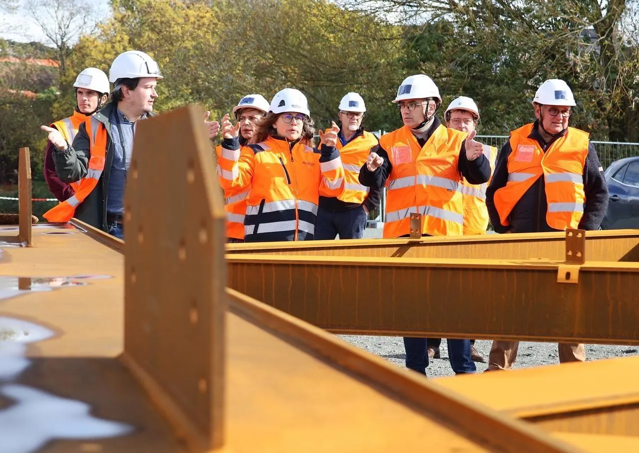 Quatre mois après le début des travaux, une visite du chantier de la passerelle était organisée, près de l’hippodrome, en présence de plusieurs élus, à Sablé-sur-Sarthe, ce vendredi 24 octobre 2025. La phase d’assemblage des pièces de la structure, réalisée sur place, avance bien.