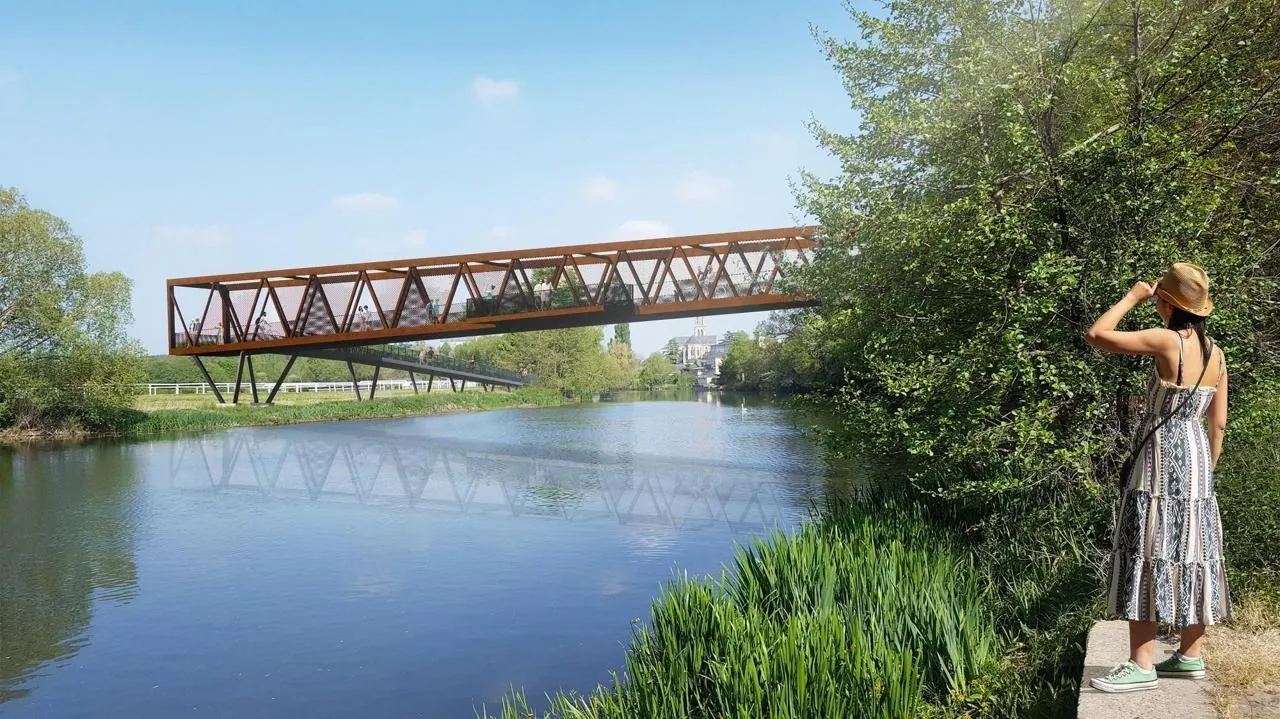 La passerelle reposera des piliers à quatre branches, positionnés de chaque côté de la rivière. Ouest-France