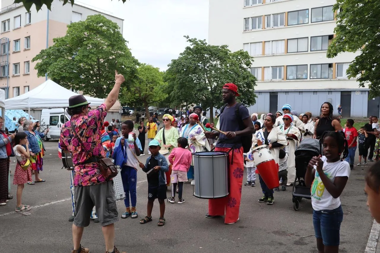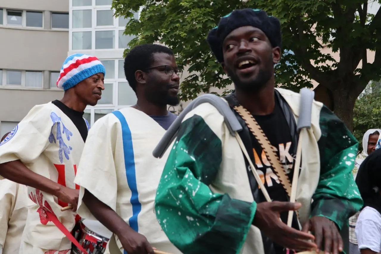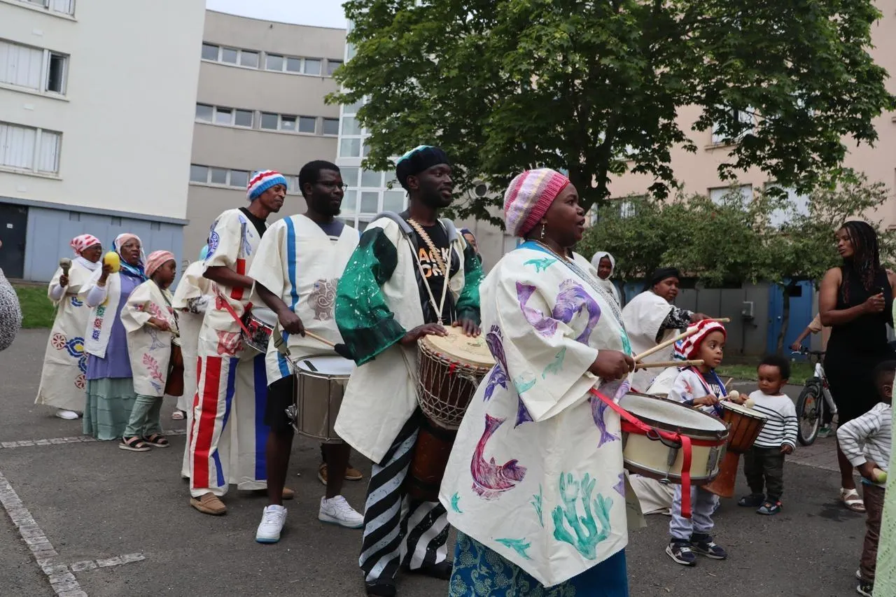 La troupe Alpha Bouo Boum a animé ce premier pique-nique musique dans le quartier Saint-Exupéry de Sablé-sur-Sarthe, mardi 29 juillet 2025. © Ouest-France