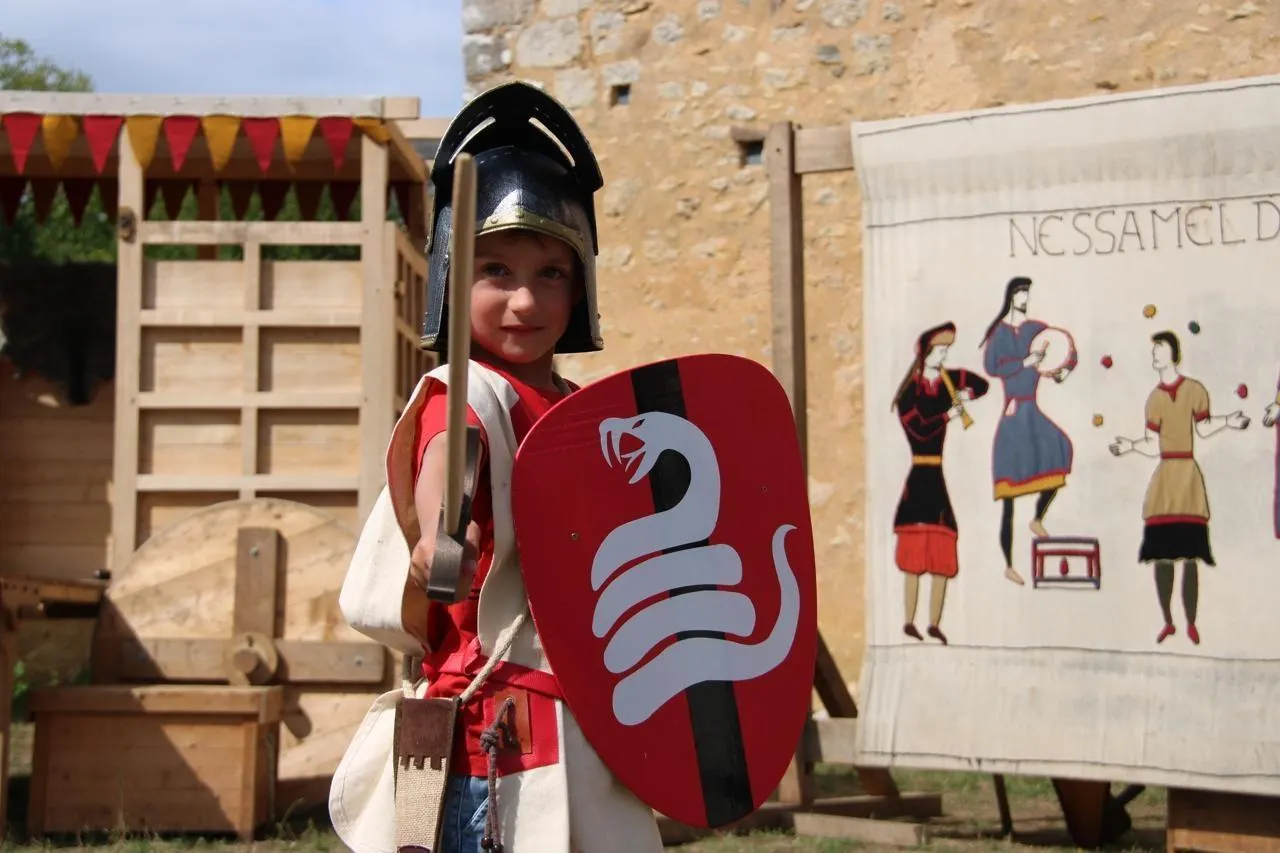 Lorsqu’on passe l’arche du manoir de la cour, on fait immédiatement un bond dans le temps. L’édifice du XIIIe siècle fourmille de personnages en tenues d’époque et d’enfants plongés dans les combats chevaleresques.