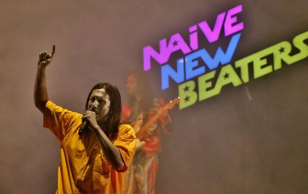 Le chanteur et leader du groupe français Naive New Beaters, visage chromé, a fait le show vendredi soir sur la grande scène. Ouest-France