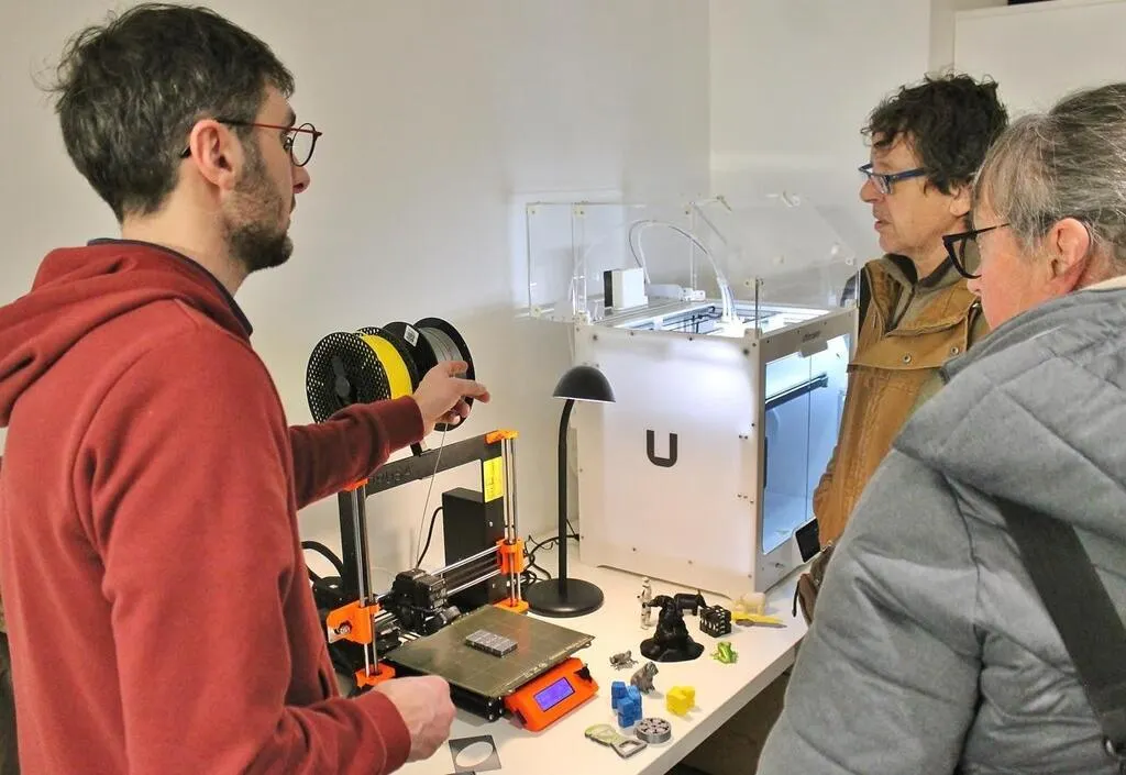 L’autre attraction de la nouvelle médiathèque, c’est le fablab, l’atelier avec ses imprimantes 3D, animé par Romain Beaupied. Il a usé de la salive tout au long de la journée d’inauguration pour présenter son nouveau terrain de jeu aux curieux. Francine, retraitée solesmienne et chanteuse au conservatoire, y a emmené son mari Patrick, ancien dessinateur en bureau d’études. « Il est très bricoleur. Ça va lui plaire. Et pour moi, j’ai repéré les brodeuses numériques qui pourraient me permettre de personnaliser des vêtements pour mes petits-enfants », glisse-t-elle.