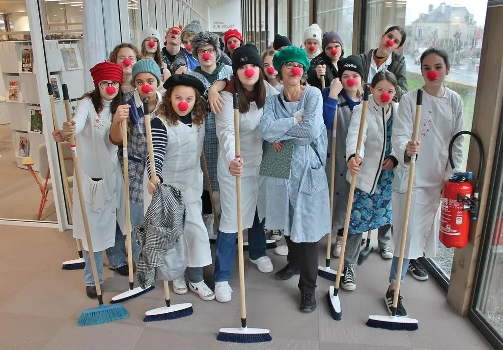 La « brigade de nettoyage intempestif », constituée d’élèves de la section théâtre du conservatoire autour de leur professeure Béatrice Pasquier, a égayé les couloirs. Ouest-France